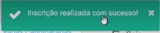 Após ter respondido o questionário e enviado, irá ser redirecionado para a Página Principal, e irá aparecer a confirmação no topo direto da Página “Inscrição Realizada com Sucesso”, como mostra a imagem abaixo: